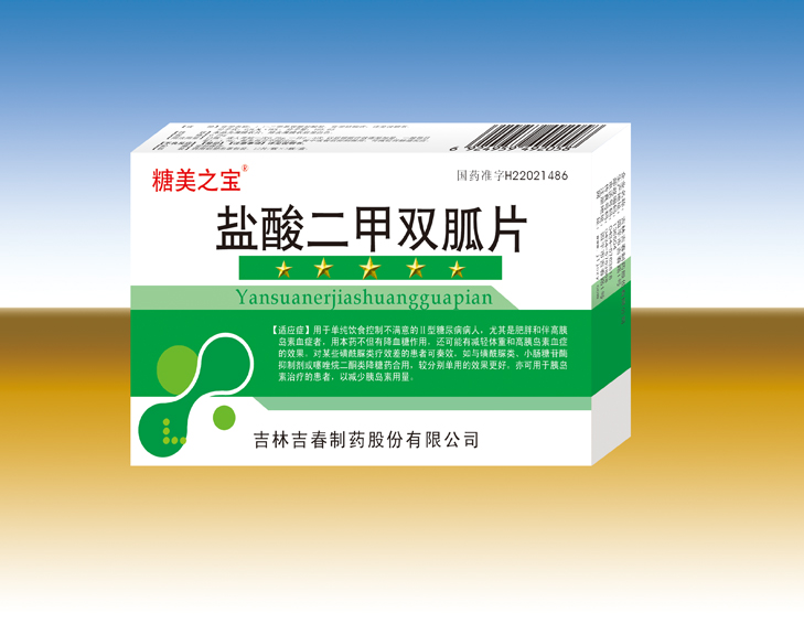 【適 應(yīng) 癥】 用于單純飲食控制不滿意的Ⅱ型糖尿病病人,尤其是肥胖和伴高胰島素血癥者,用本藥不但有降血糖作用,還可能有減輕體重和高胰島素血癥的效果。對某些磺酰脲類療效差的患者可奏效,如與磺酰脲類、小腸糖苷酶抑制劑或噻唑烷二酮類降糖藥合用,較分別單用的效果更好。亦可用于胰島素治療的患者,以減少胰島素用量。